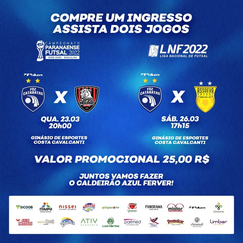 A diretoria do Foz Cataratas irá presentear o torcedor do Azulão com a seguinte promoção. Na compra do ingresso para o jogo de quarta-feira (23), o torcedor irá ganhar o ingresso para a estreia do time na Liga Nacional, no sábado (26).